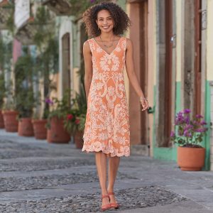 Hearts skip a beat over this romantic rayon dress with jersey body and mesh overlay. Woven. ribbon appliqué adds an unrivaled elegance. Classic fit with full skirt. Nylon/rayon/spandex. Dry Clean. but for best results Sundance recommends garment to be hand washed. Imported. Exclusive. Sizes XS (0-2). S (4-6). M (8-10). L (12-14). XL (16-18). XXL (20-22). Approx. 39-1/2l.