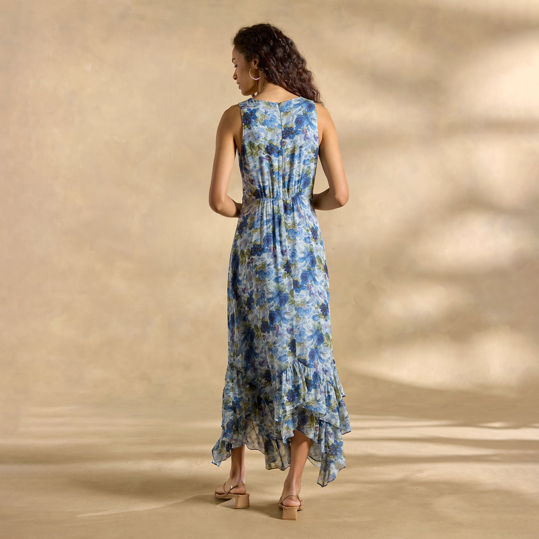 Equal parts outgoing and demure. our Champs de Fleur Printed Dress cultivates charm at every turn—with a flattering surplice neckline. subtle smocking and an ultra-femme asymmetrical ruffled hem. Back zipper with elastic for comfort; fully lined. Viscose/rayon. Machine wash. Imported. Exclusive.