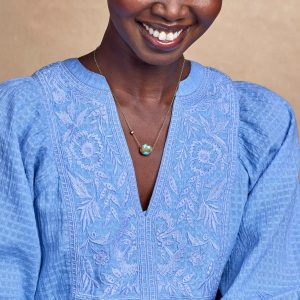Interspersing luminous freshwater pearls on 12kt gold-filled wires with organic rounds of deeply oxidized sterling silver. captures the spirit of volcanic islands in the sea. Sterling chain links in varying sizes and shapes connect the stations. and moonstones add oceanic sparkle. Lobster clasp. Handmade in USA. 37l